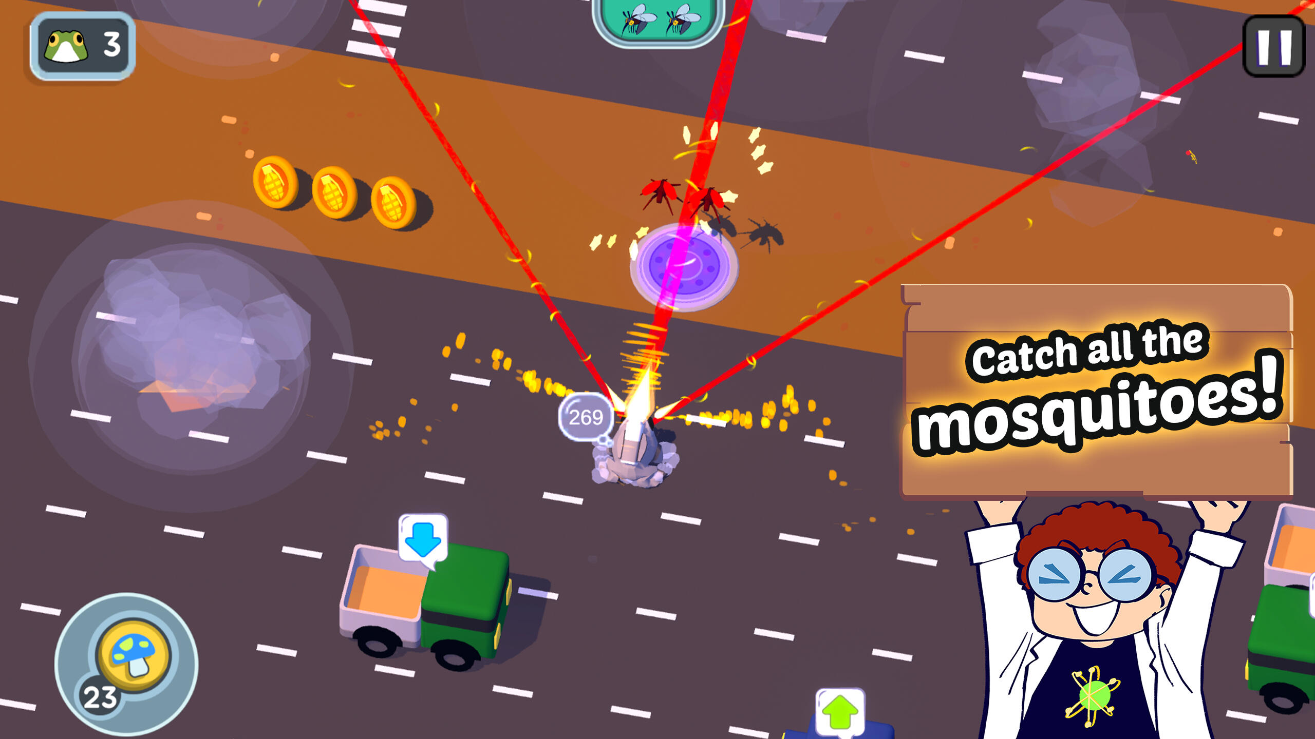 🍄 Zap as many mosquitoes as you can.