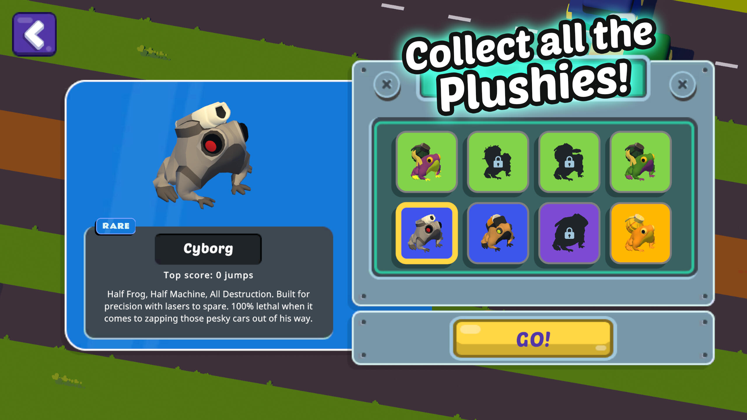🐸 Collect all the FrogsYour adorable frog plushie tries to cross at the worst possible moments, as it hops on its own.