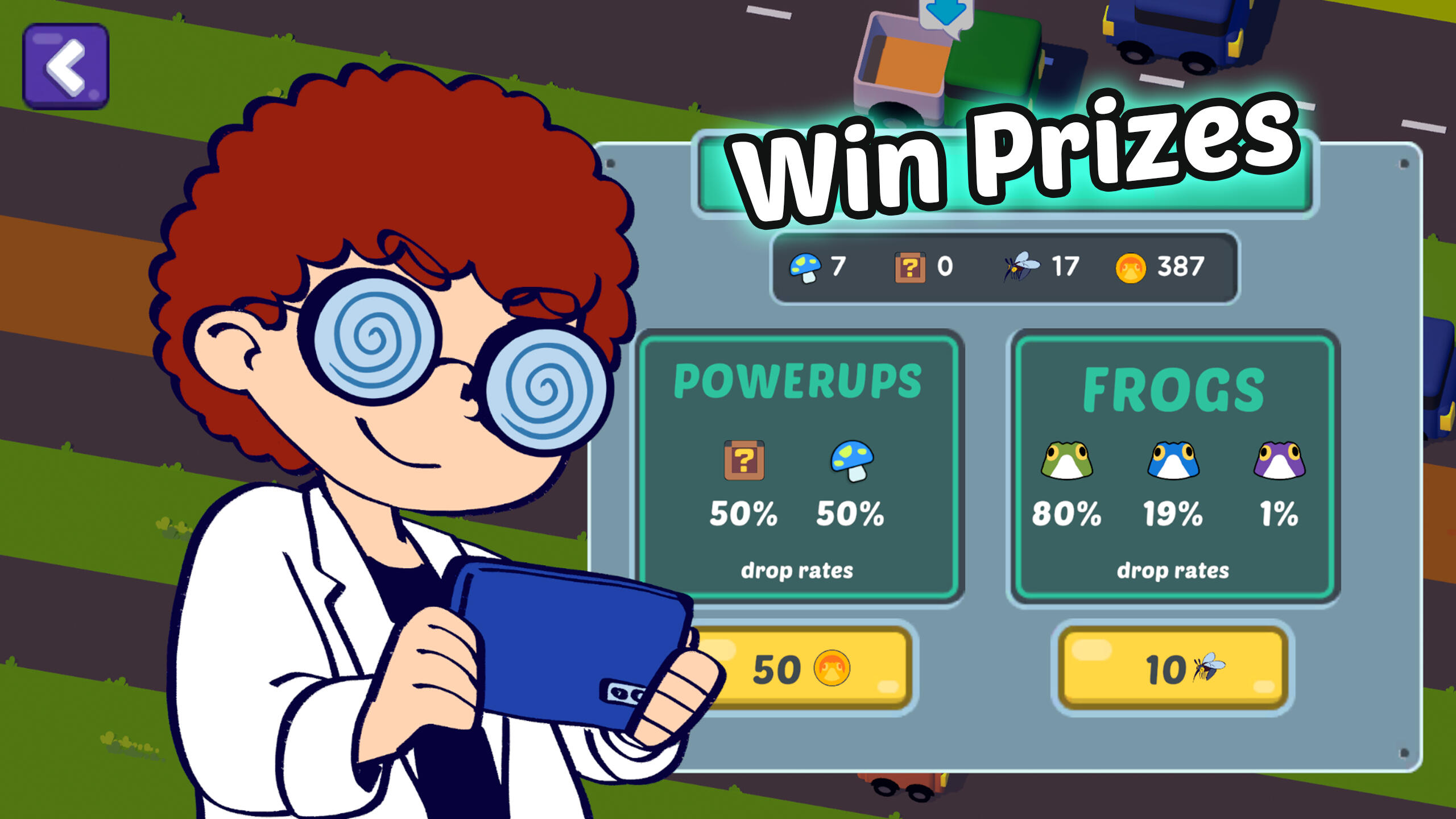 🎁 Prizes from The LabCollect coins to unlock consumable power-ups.